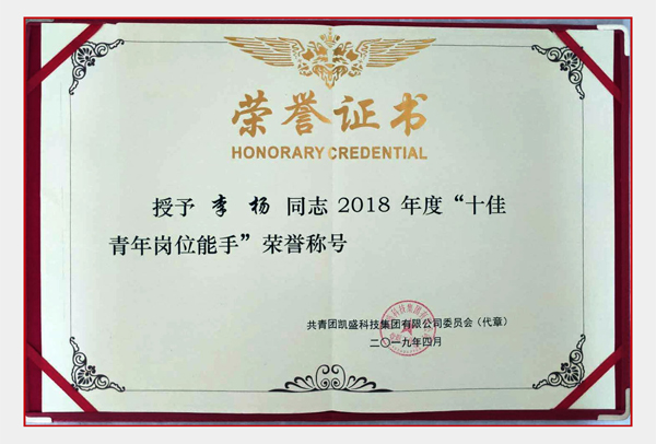用忠誠書寫出最燦爛的篇章,讓奮斗成為青春最亮麗的底色。五四青年節(jié)之際,凱盛科技授予合肥中辰輕機(jī)總裝車間李楊“十佳青年崗位能手”榮譽(yù)。