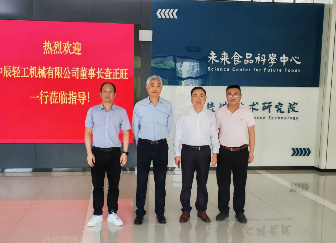 On the afternoon of May 16, Zhang Zhengwang, Party Secretary and Chairman of Zhongchen Light Machinery, went to the Advanced Technology Institute of Jiangnan University for research. Jiang Fenghua, Dean of the Mechanical Engineering College and Deputy Director of the Advanced Technology Institute, and Huang Wenjin, Technical Director of Zhongchen Light Machinery, accompanied him. The symposium was hosted by Li Ding, Deputy Director of the Advanced Technology Institute. Both sides exchanged in-depth views on deepening cooperation in key technology R&D, core equipment manufacturing and other fields.