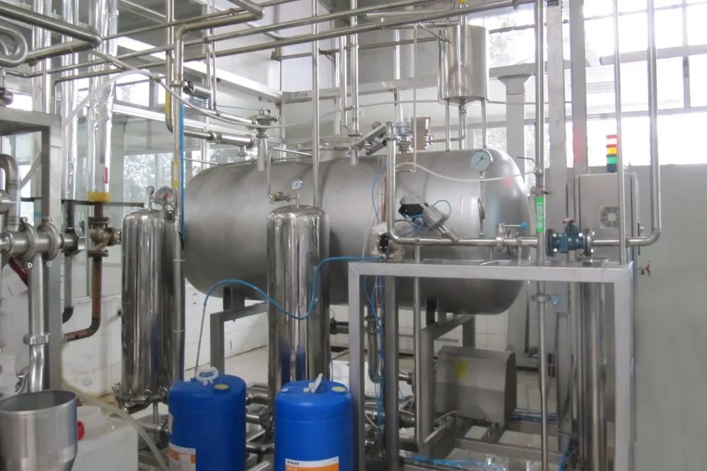 The patent technology "A Method for Preventing Drying of Materials on the Upper Internal Surface of a Container" is a key technology for solving the problem of scale formation in high-temperature filling tanks for juice, soy milk drinks, etc. The upper surface of the material in the filling tank will dry out over a long period of time at high temperature, and over time, a drying area will form, with flakes falling off and then being mixed into the bottled container, affecting the quality of the beverage. The drying area is also difficult to clean during CIP cleaning, requiring manual opening of the filling tank, which is time-consuming and labor-intensive. This patent technology optimizes the pipeline flow and control program to prevent drying of materials in the tank by using a cleaning ball to spray and flush the material at a predetermined time.