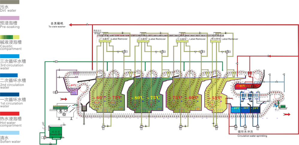 SXP系列超高速雙端洗瓶機(jī)清洗流程圖